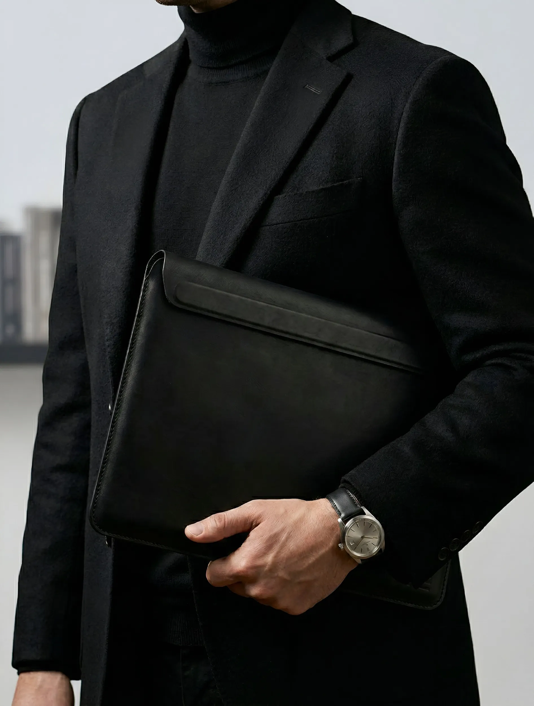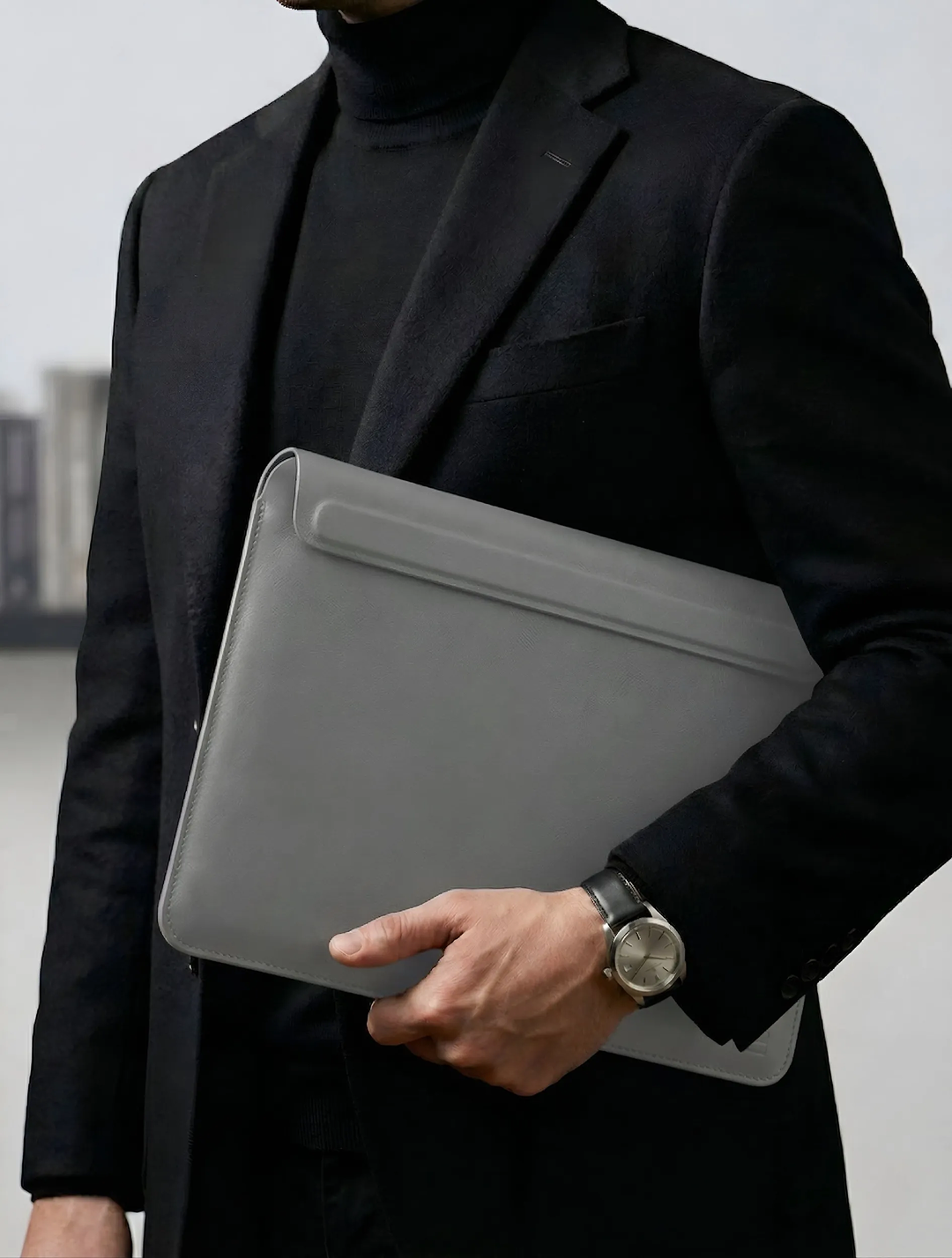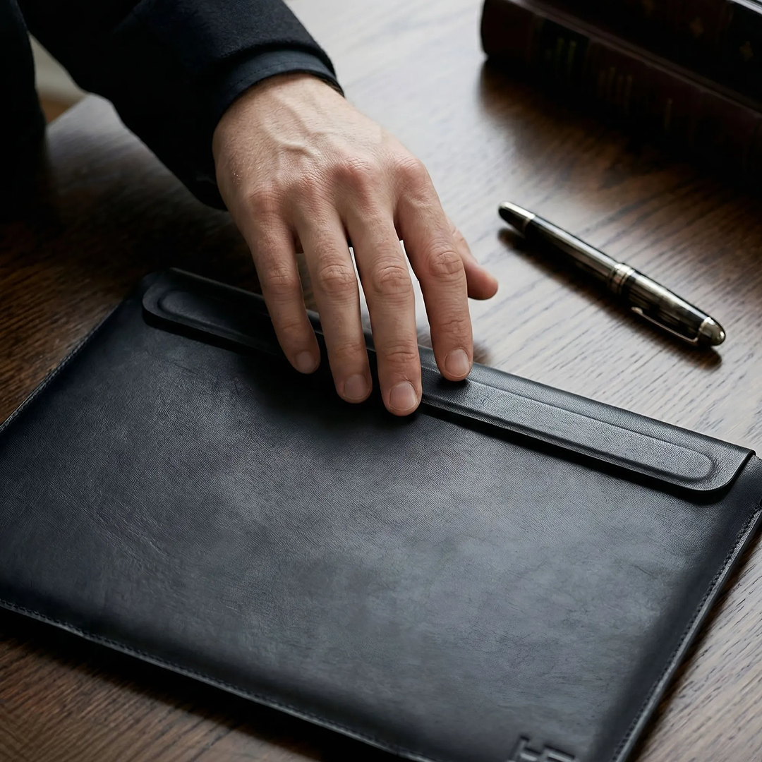 ✅ Да. Чехол имеет жёсткую форму и удобно держится в руке как клатч или папка. Дизайн специально сделан для того чтобы выглядеть презентабельно без дополнительной сумки — на встречах, в офисе, в кафе.