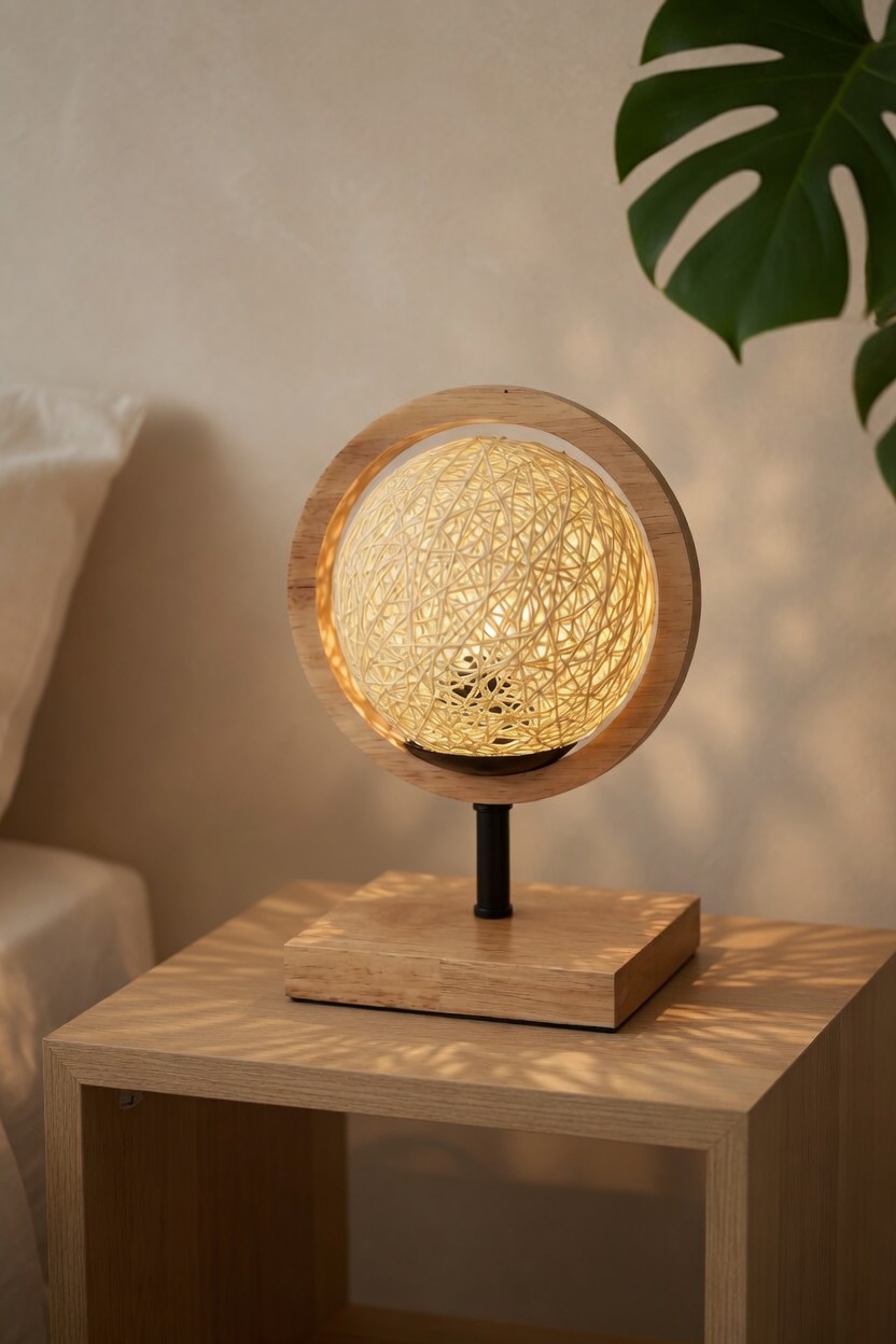 Светлый вариант — основание и кольцо из светлого дерева, плафон кремового цвета. Подходит под скандинавский и светлый интерьер. Тёмный — тёмно-коричневое дерево с коричневым плафоном. Подходит под классику и тёмную мебель. Оба варианта смотрятся одинаково стильно.