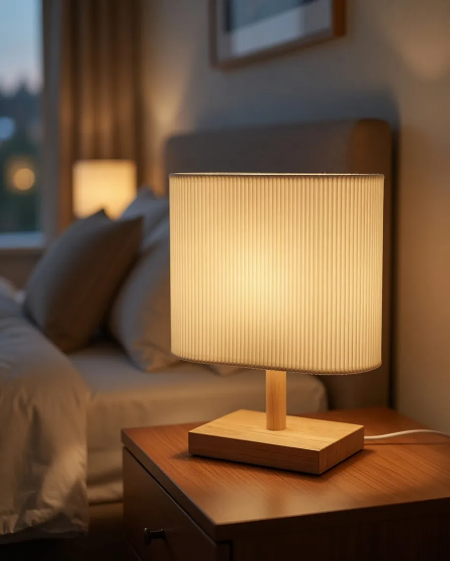 Светлое дерево и бежевый тканевый абажур сочетаются с любым стилем — скандинавский, классический, современный, минимализм, бохо. Нейтральная палитра вписывается везде.