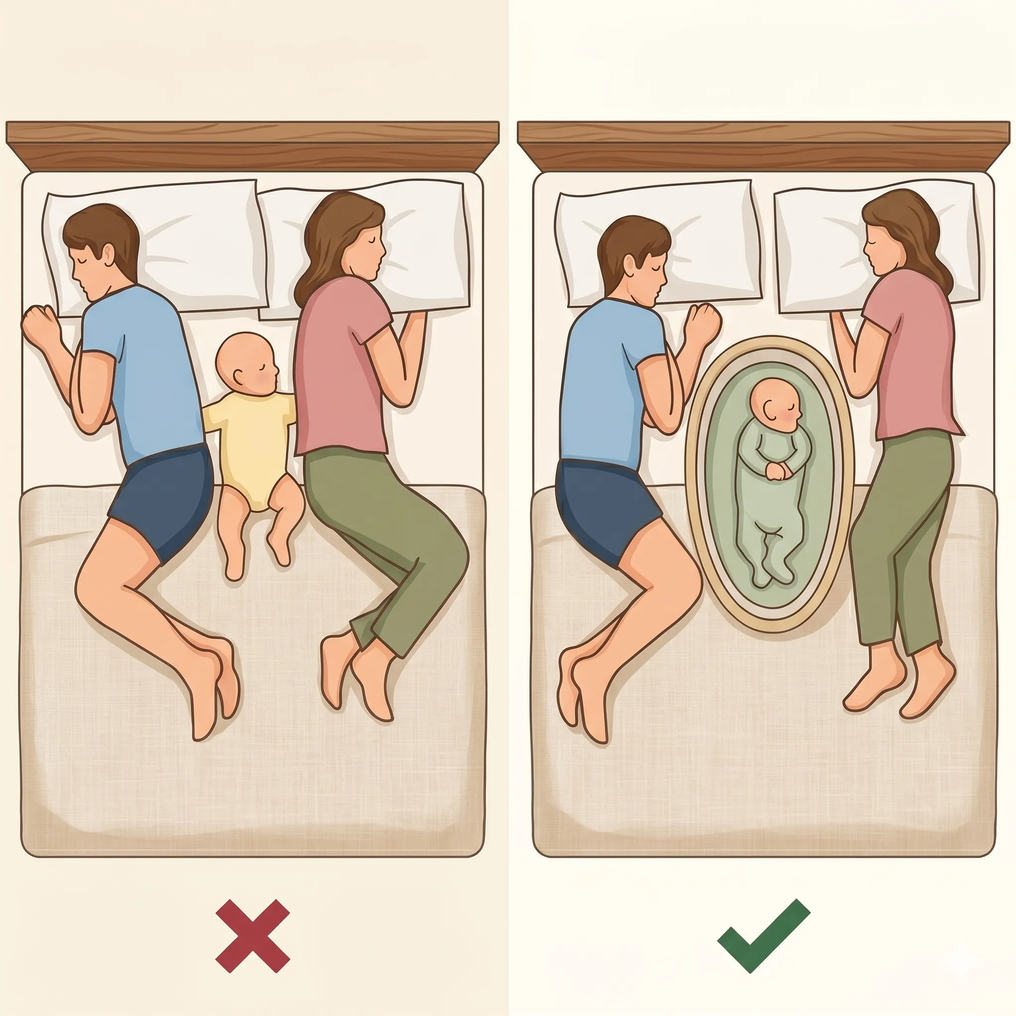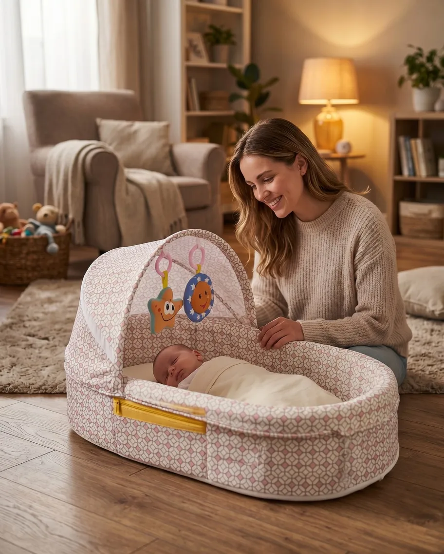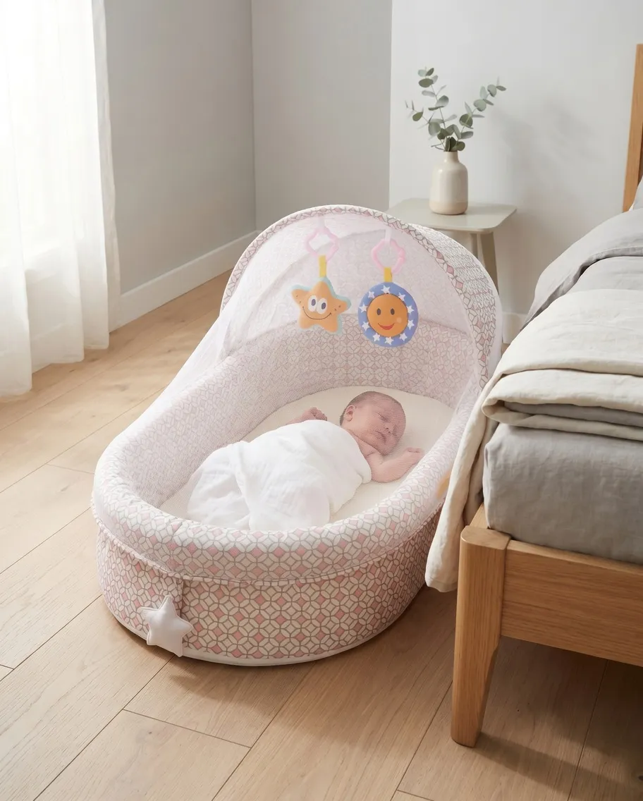 Да — именно для этого она и создана. Жёсткое дно поддерживает позвоночник, высокие мягкие бортики не дают малышу перевернуться. Это безопаснее чем класть новорождённого просто на взрослую кровать рядом с родителями.